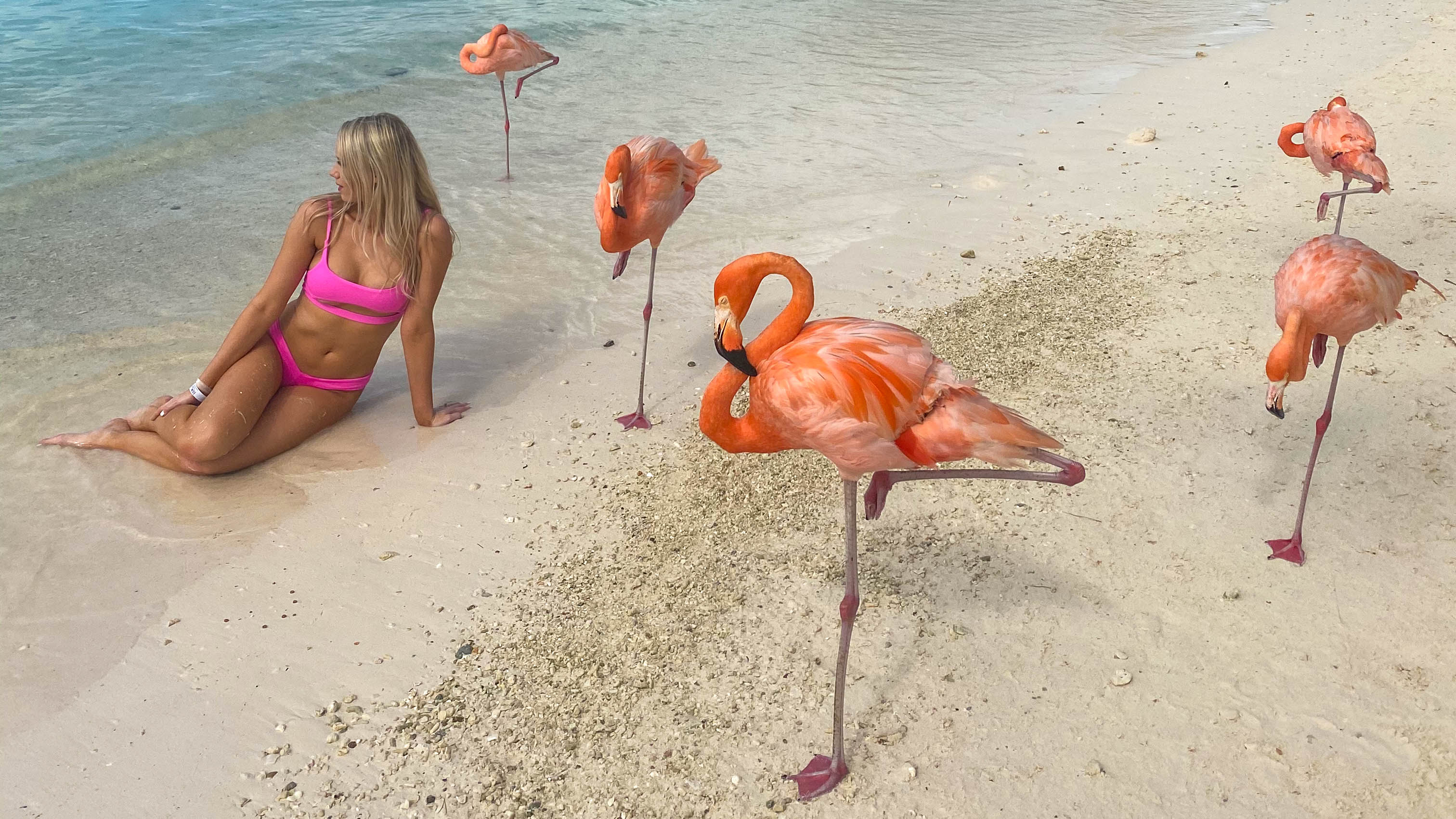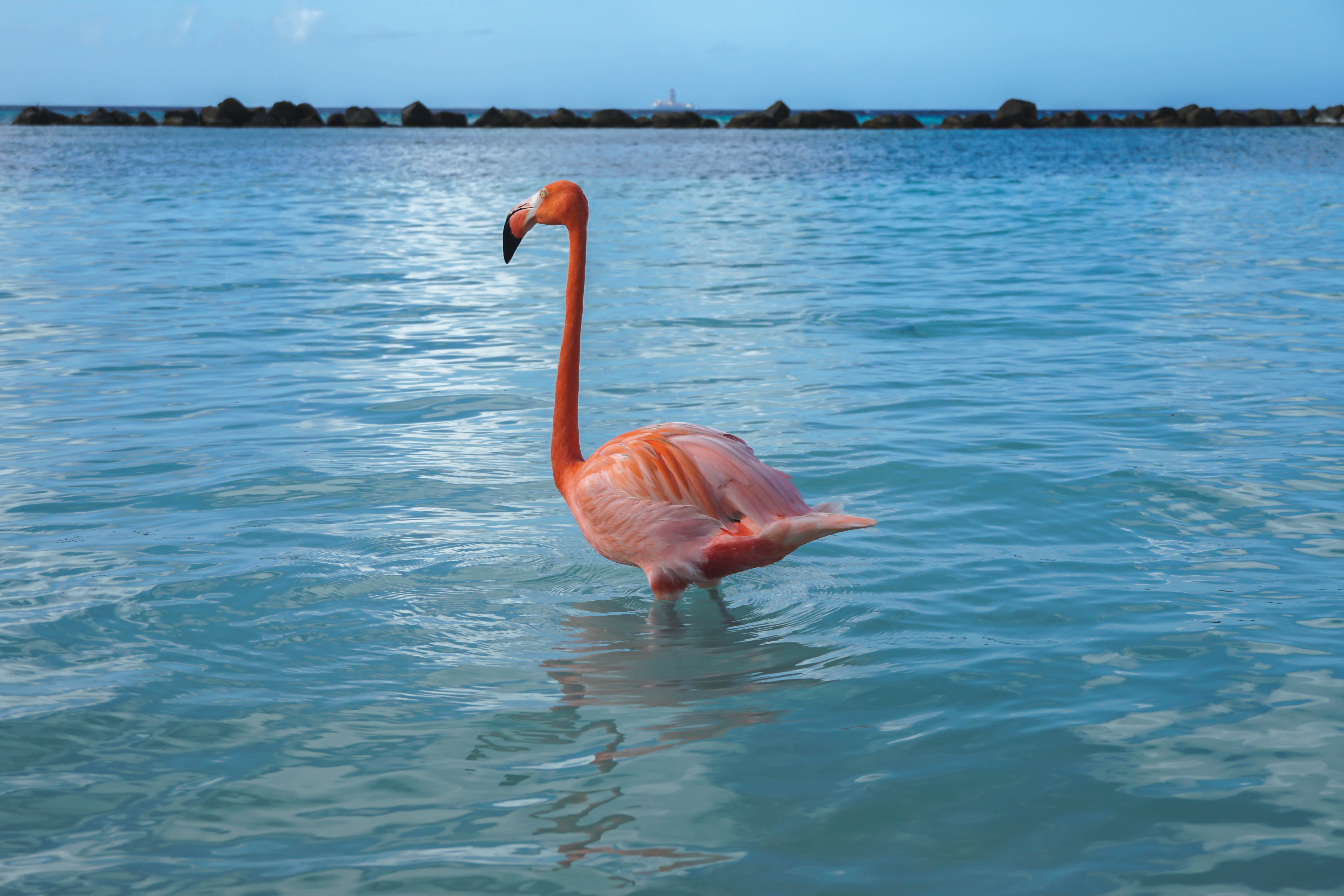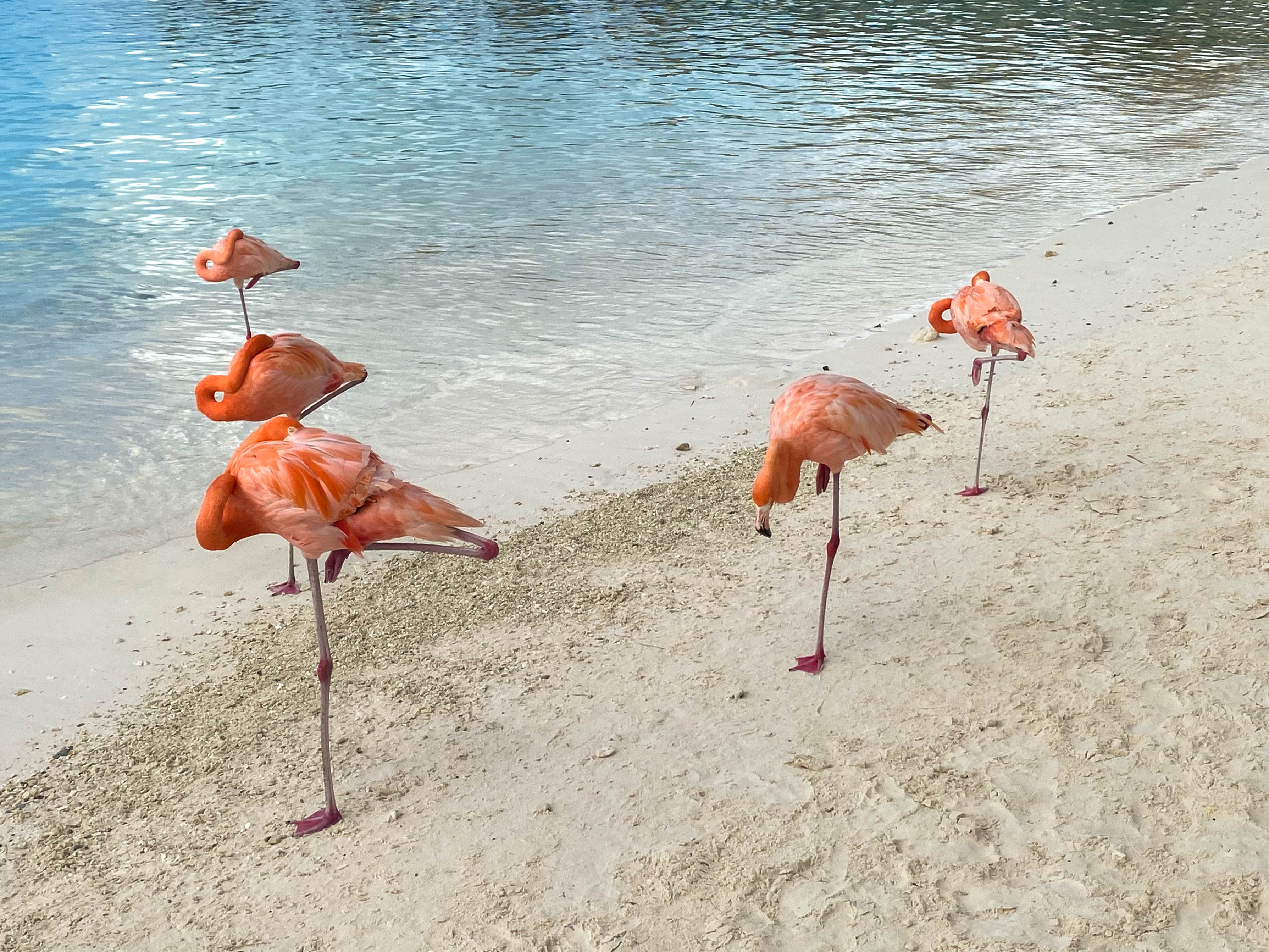 If you want to see the flamingos in Aruba, it actually takes some planning. There are only about 8 flamingos in Aruba, and they are all located in one place: on Flamingo Beach, Renaissance Private Island.