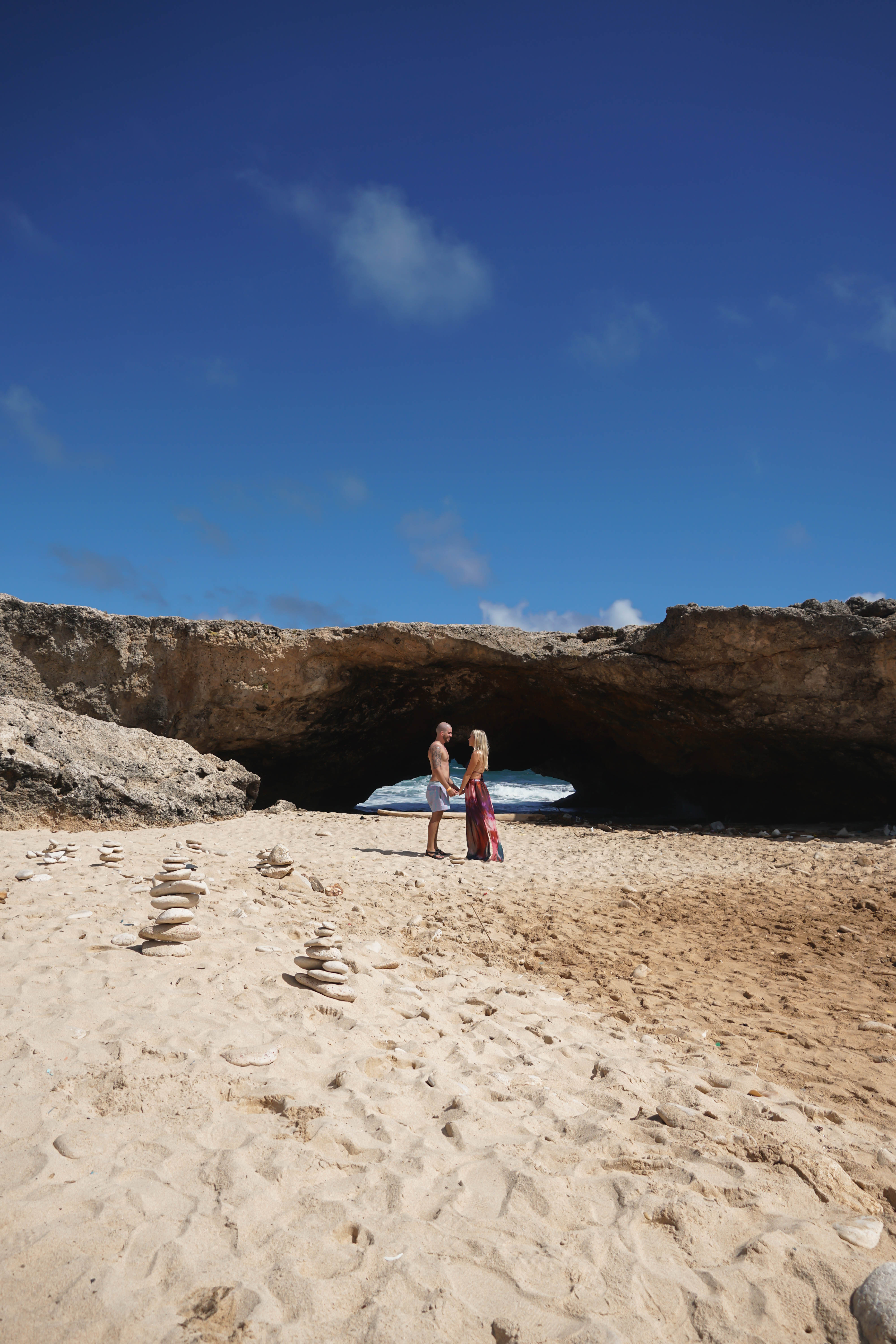 Did you know that 20% of Aruba’s land is a protected national park? Arikok National Park is the perfect place to experience Aruba’s gorgeous desert landscape and breathtaking coastline. Tickets are $11 per person, and you can purchase them when you arrive. You’ll need to either pay a tour guide to take you around the park, or you can bring a 4×4 vehicle and go off-roading on your own. We rented a jeep for two days in Aruba and explored the park without a guide. It was such a memorable experience!